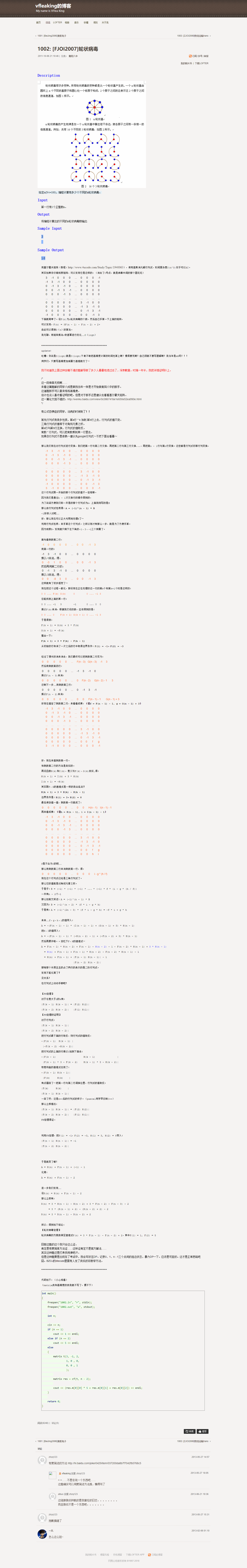 #include <iostream>#include <cstdio>#include <cstring>#include <algorithm>#define digit 1000000000using namespace std;struct bigint{ mutable int a[205]; inline bigint() { memset(a,0,sizeof(a)); a[0]=1;a[1]=0;return; } inline bigint(int b) { memset(a,0,sizeof(a)); a[0]=1;a[1]=b;return; } inline int& operator[](size_t pos)const{return a[pos];} inline bigint& operator+=(const bigint& b) { int i;a[0]=max(a[0],b[0]); for(i=1;i<=a[0];++i)a[i]+=b[i]; for(i=1;i<=a[0];++i) { if(a[i]>=digit) { ++a[i+1];a[i]-=digit; } } if(a[a[0]+1])++a[0]; return *this; } friend ostream& operator<<(ostream& os,const bigint& a) { printf("%d",a[a[0]]); for(int i=a[0]-1;i>=1;--i)printf("%09d",a[i]); return os; }}F=1,F1=1,F2=1,G=0,G1=0,G2=0;int main(void){ int i,n; scanf("%d",&n); for(i=1;i<=n;++i) { if(i)G2+=F,G2+=F; if(i<n)G1+=G2,G+=G1; F=F1;F2+=F;F1+=F2; } cout<<(F+=G)<<endl; return 0;}